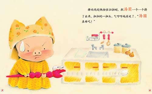 猪妈妈赶快按住扭扭蛇,把汤圆一个一个挤了出来。扭扭蛇一扭头,气呼呼地游走了,“汤圆真难吃!”