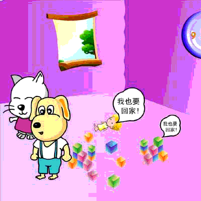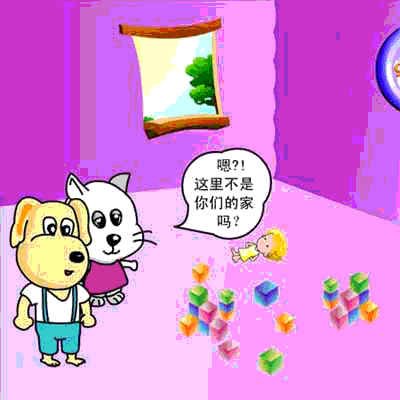 5、小狗小猫转过身问玩具说:咦,这里不就是你的家吗?