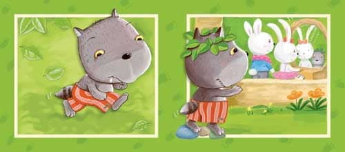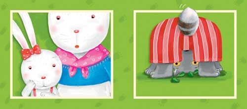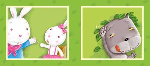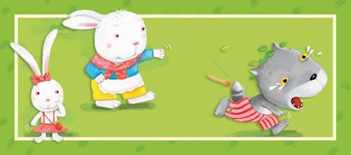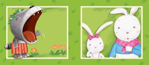 3.妈妈向小兔努了努嘴,装作对小兔发起了脾气,“再不乖,把你扔到窗外喂狼吃!”小狼一听乐开了花,心想:今天运气真不错呀!