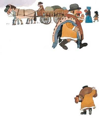 小克劳斯哭了。他剥下马儿的皮,把它风干,装进一个袋子里,背到城里去卖。