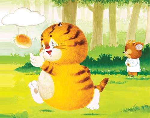 毛毛球一边跑一边想:“这回最好掉下些小甜面包来,好给我增加营养。” 不料,从小云彩上掉下一根小木棒,只要毛毛球跑得慢了,小木棒就敲他的屁股。毛毛球只好使劲跑。小木棒终于消失了,毛毛球心想:“这回该落下来果汁了吧。”