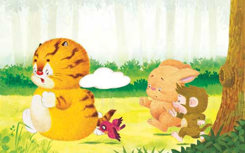 不料,从小云彩上飞下来一只尖嘴鸟,他伸出长长的尖嘴啄毛毛球的屁股。毛毛球吓坏了,他拼命地跑,超过了许多人,连跑在最前面的小兔子也被他超了过去。