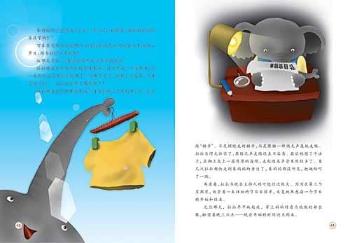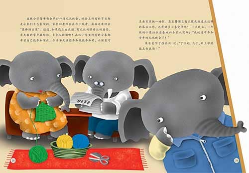 森林小学每年都会举行一场元旦晚会,晚会上所有的节目都是小象们自己表演的,家长和老师会在台下观看,最后还要评出“最棒演出奖”。想想,如果能上台表演,有无数双眼睛注视着你,有无数的掌声献给你,多令人骄傲啊!森林小学里所有的小象都希望自己能参加演出。但并不是谁想参加就能参加的,小演员可是要百里挑一的啊。甚至替演员看衣服或搬道具这样的幕后工作,也有好多小象竞争呢! 一天晚上,一年级的小象拉拉自豪地向全家人宣布:“我被选中参加今年的元旦晚会了!”