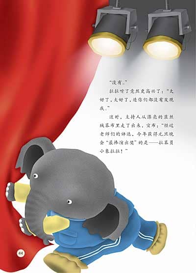 这时,主持人从漂亮的蓝丝绒幕布里走了出来,宣布:“经过老师们的评选,今年获得元旦晚会“最棒演出奖”的是——拉幕员小象拉拉!”