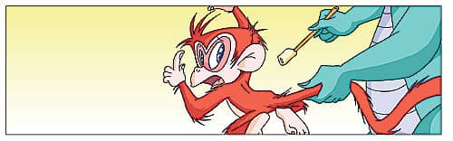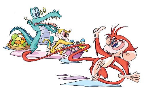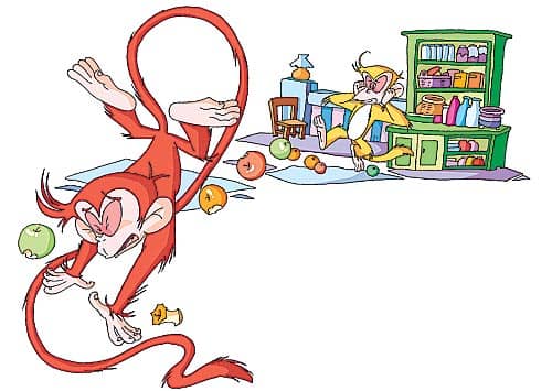 看着自己长长的一卷长尾巴,小猴自己也挺害怕。“别急,”猴妈妈说,“我去请一位高明的医生来,帮你治尾巴。”