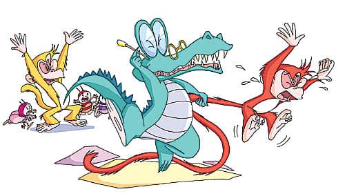可是,鳄鱼医生已经一把抓住了他,正往他的尾巴上搽酒精,准备动手术了。