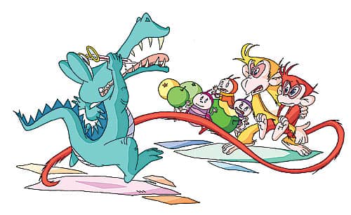 鳄鱼医生一松手,小猴赶紧去拿笔。