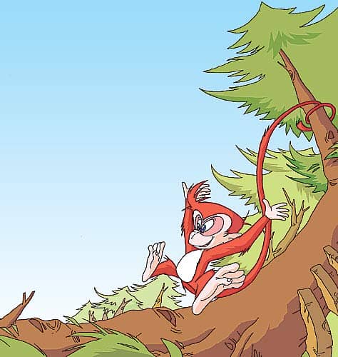 后来,小猴把尾巴卷在树枝上,开始用尾巴来荡秋千。
