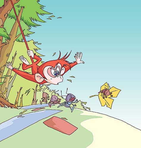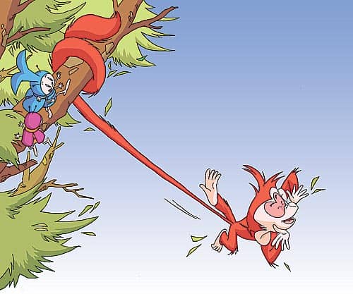 这时候,小猴也回过头去看自己的尾巴。这一看,他自己也吓了一跳。“天哪,我的尾巴有这么长吗?”