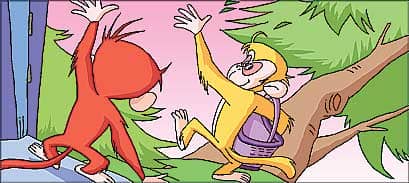 小猴说:“我也不明白,我明明在很高的树上荡秋千,你在地上走,我怎么会撞到你的呢?”