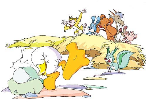 小动物们循着声音找过去。他们看见,有一个蛋,正使劲地往石头上撞呢。“哈哈哈!”动物们都笑了起来,他们从来没有看见过有一个蛋敢往石头上撞的。