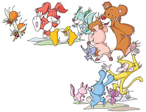 有一天,小动物们正在草地上玩的时候,听到了一个奇怪的声音:“砰,砰!”