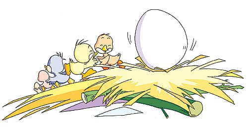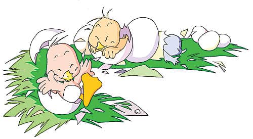 紧接着,第二个蛋、第三个蛋、第四个蛋……都咔啦一声裂开,从里面钻出来一只只毛茸茸的小鸭子。