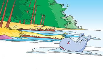 有一头大河马,他在湖面上露出了两个鼻孔和两只眼睛。他是一头害怕孤独的大河马。