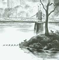 波士顿有一个公园,那里有一个很好的水塘,水塘中间还有一个小小的岛。“这地方过夜挺不错的。”马洛得太太说。于是,他们就飞了下来。