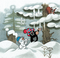 没过多久,狗救生员骑着雪地摩托车来到了鼹鼠丘。他察看了当时的情况,很和气地说:“不要慌,这是很普通的案子,从早上到现在已经发生好几起了,我们只要行动快些就没事了。”他把雪橇、小鼹鼠和正在融化的雪人拖在车后,像闪电一样地把车开走了。