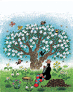 当雪人在高山上滑雪的时候,小鼹鼠也很高兴地看到鼹鼠丘四周百花含苞待放,虫鸟嗡嗡嘤嘤的美妙景象。