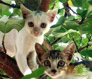 猫妈妈在春天里生下了两只可爱的小猫,穿着花衣服的是哥哥,浑身雪白的是弟弟,他们整天围在妈妈的身边喵喵叫着。