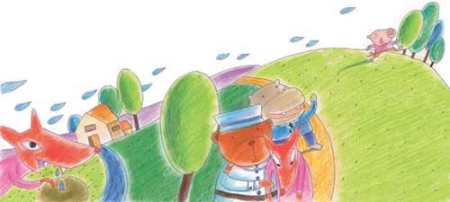 这天,其其一个人在家。一只坏狐狸溜了进来。“哼哼,小猪,快告诉我钱藏在哪里?如果你敢不说,我就啊呜一口吃掉你!”其其什么话也说不出来,只是一个劲地摇头、摇头、摇头!坏狐狸气得把牙齿咬得格登格登直响:“好大胆的小猪,竟敢不听我的话!气死我啦!”小猪其其看到把坏狐狸气得半死,突然生出一股勇气来,他大唱起来:“有坏狐狸,大家快来抓坏狐狸……”其其边唱边跑,他跳过了水沟,跳过了沙堆,叫来了大熊巡警,叫来了河马保安。坏狐狸呢,早就吓得两腿发软,不停地摇头摇头摇头:“别抓我,别抓我!”