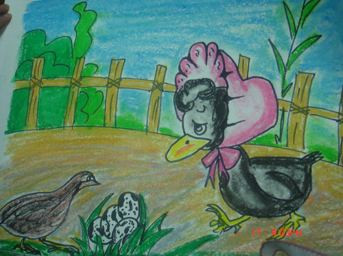 鹌鹑妈妈说:“这不是你的蛋,这是我生的,你看,我的蛋比你的蛋小,蛋壳上有许多的斑点。”