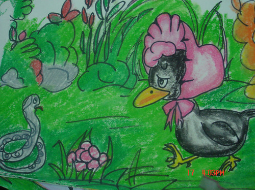 鸭妈妈刚想把蛋拿走,没想到旁边游过来一条蛇,说:“是谁在动我的蛋?”鸭妈妈吓了一大跳,只好丢下蛋急急忙忙逃走了。