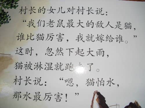 村长的女儿对村长说:“我们老鼠最大的敌人是猫,谁比猫厉害,我就嫁给谁。”