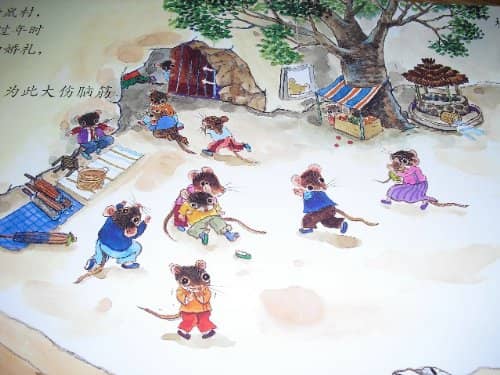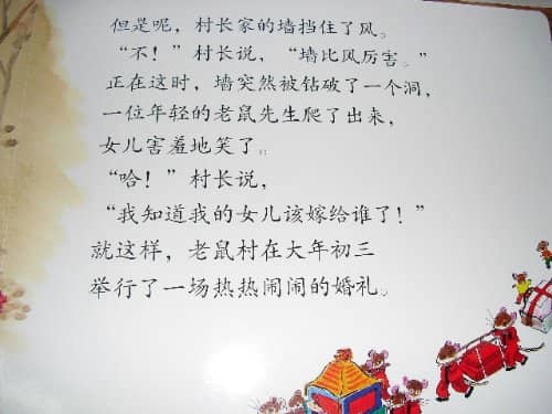 正在这时,墙忽然钻破了一个洞,一位年轻的老鼠先生爬了出来,女儿害羞的笑了。