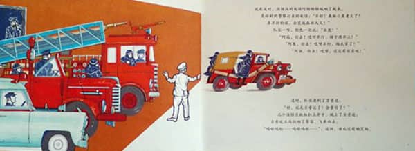 阿高很为他的云梯得意:“看看我这梯子,无论多高的大楼着了火,只要有我在,就不用担心啦。我噌噌噌地把梯子一架,就能从最上面喷水把火灭掉,还能从高高的窗户里把人救出来。”