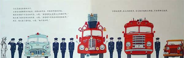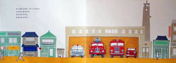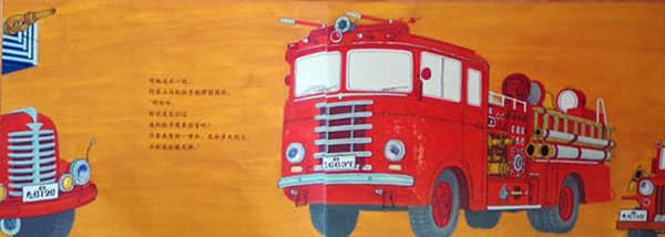在小镇的正中央,有一个消防站。站里有云梯车阿高、高压喷水车阿泵,还有急救车阿快。