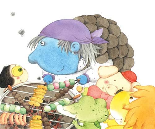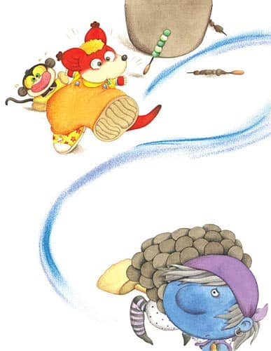“烧火巫婆!原来是你!上次考拉小甜心就是吃了你的串串烧生病的。包包,别怕,我来吹哨。”红袋鼠宝宝掏出哨子吹了起来,烧火巫婆吓得扔下烧烤炉就逃跑了。