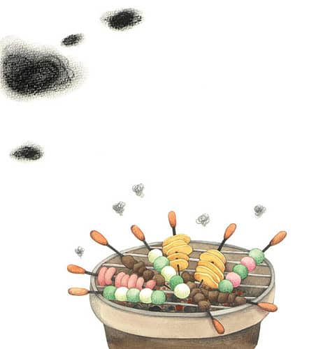 “串串烧!串串香!”烧烤婆婆更大声地叫卖起来,围过来的小孩越来越多。包包一口气把手里的串串烧全吃进了肚子:“要是再有两元钱就好了。”