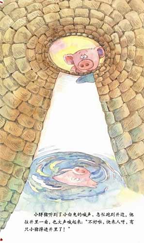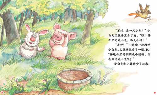 “不对,是一只小兔!”小白兔又往井里看了看,“瞧!掉井里的是小兔,不是小猪!”