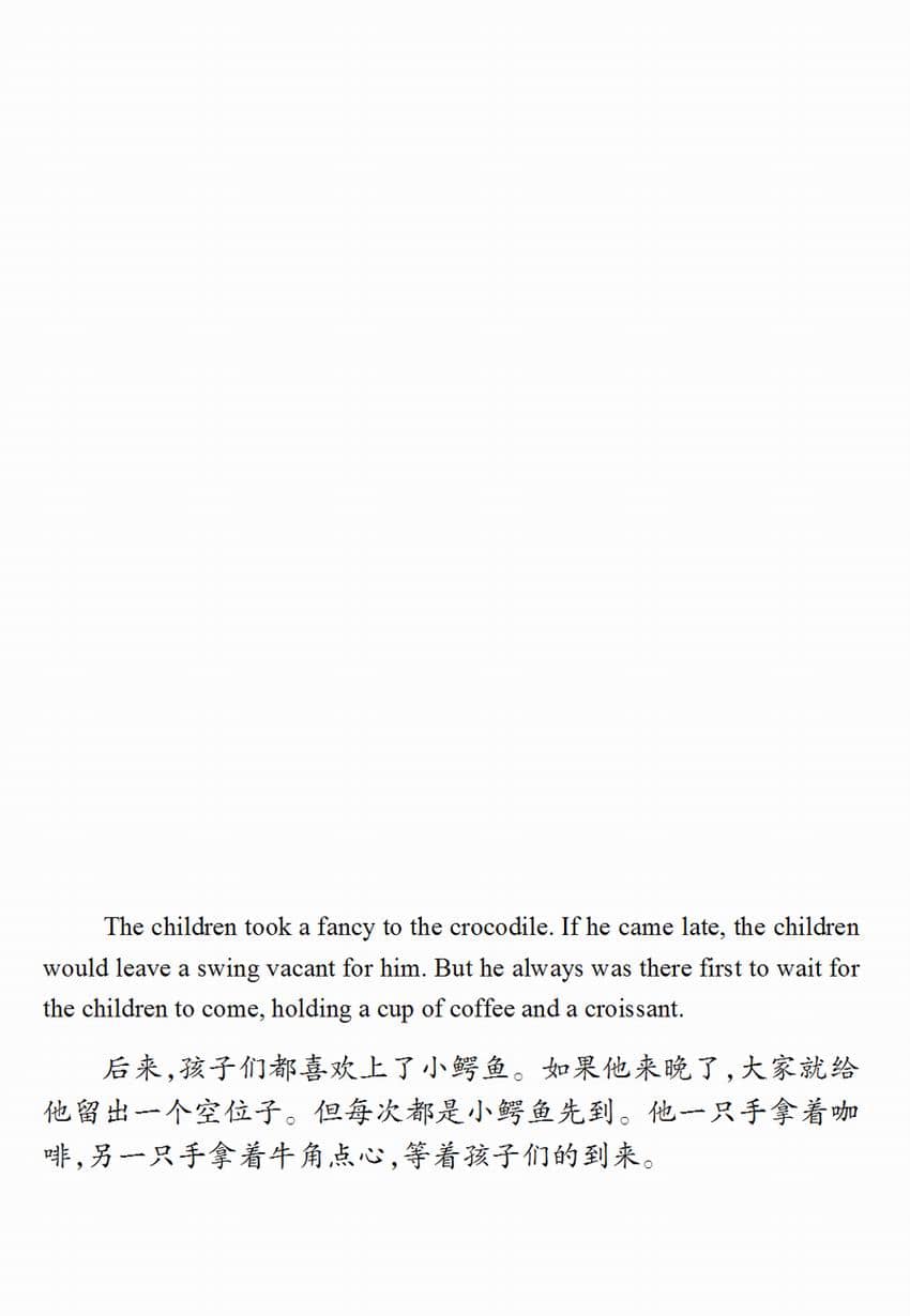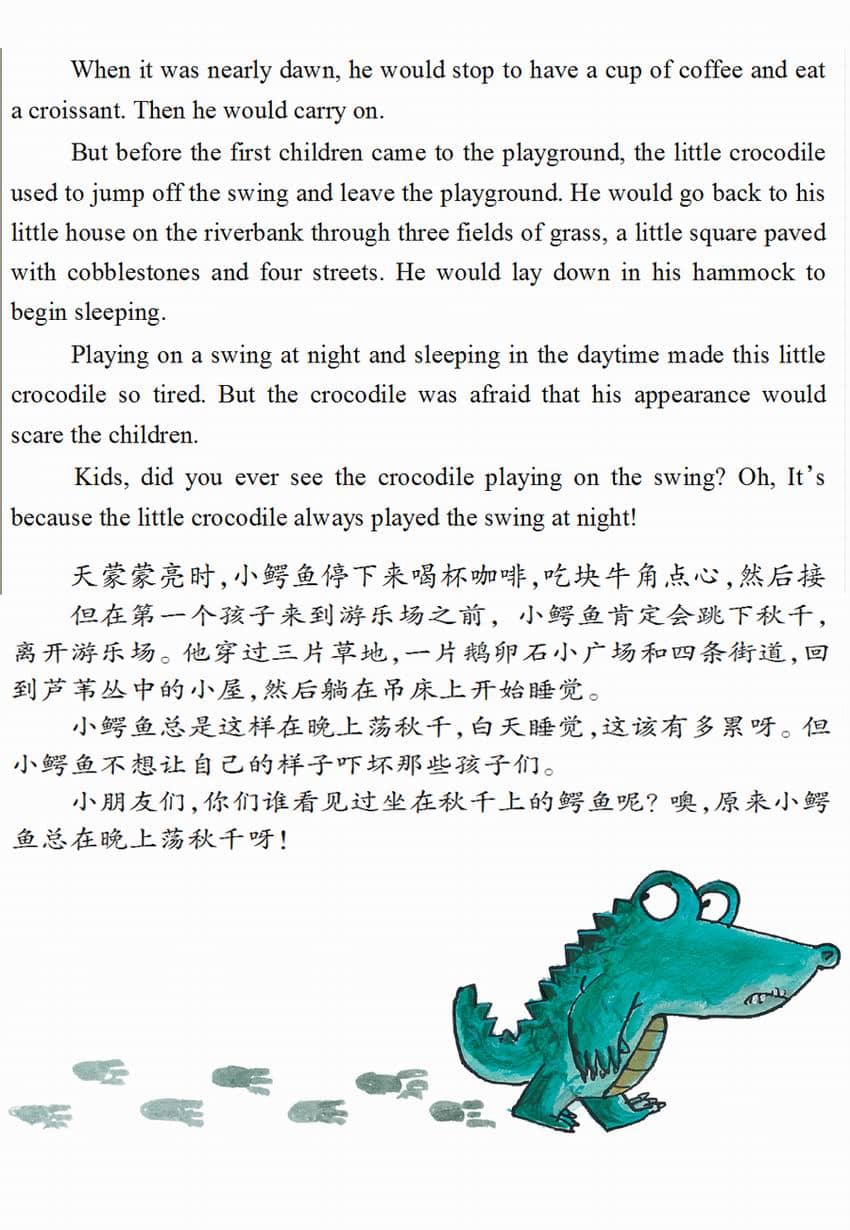 小鳄鱼最喜欢的游戏是在半夜的时候来到游乐场,独自一人荡秋千。不过天亮之后,他就赶快回到自己的小屋里去。因为他担心自己可怕的样子吓到小朋友们,直到一个叫波丽娜的小女孩发现了小鳄鱼的脚印。又孤独又疲惫的小鳄鱼的生活从此大变样。他还会在晚上荡秋千吗?培养勇敢和自信是每个孩子的早教必修课。