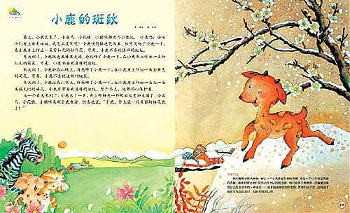 春天,小鹿出生了。小斑马、小花猪、小猫咪都来与小鹿玩。 小鹿想:小伙伴们身上都有斑纹,我怎么没有呢?小鹿悄悄躲进花丛里。牡丹花吻了小鹿一下,在小鹿身上印出一朵紫红色的牡丹花。可是,小鹿不喜欢这样的斑纹。