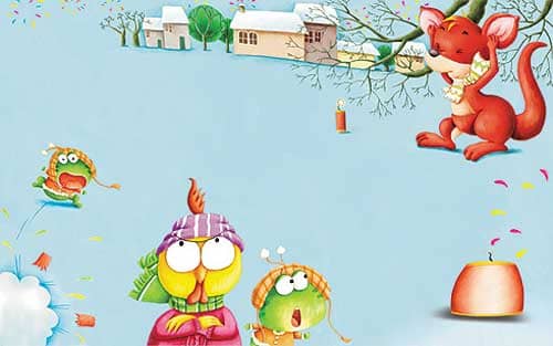“砰”的一声响,鞭炮在他手中炸响了。鞭炮炸伤了他的手,烧焦了他的毛,疼得他直咧嘴,疼得他直跺脚:“哎哟哟,哎哟哟,我的翅膀烧焦了!我的翅膀烧焦了!”