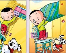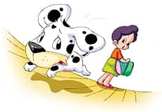 让狗司令这么一说,大头儿子这才想起来。他赶紧把狗带回家,替它把衣服脱了,再把衣服又塞回那个大袋子里。斑点狗不再伸舌头了,只是它从此以后只要一看见那个大袋子,就会大叫着转身躲进床底下。