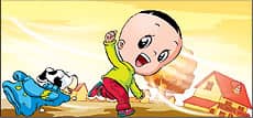 大头儿子看看自己身上新添上去的厚毛衣,再看看狗,便把自己的毛衣脱下来给狗穿,可是太大了,毛衣好象被子一样全拖在地上,而且狗好象也不喜欢,直把身体甩来甩去的,像是要甩掉这讨厌的包裹。