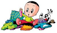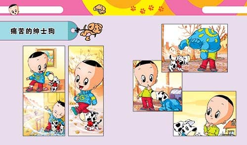 要是有……嘿,大头儿子忽然想起壁橱里有一个大袋子,那里面装满了他小毛头时穿的衣服。他带着斑点狗赶紧回家打开壁橱,从大袋子里找出一件绒衫、一件毛背心、两件毛衣,全给斑点狗穿上了:哈!不大不小真正好!大头儿子又找出一顶绒线帽和一双棉鞋……不行,狗有四条腿呢,再找,可找出来的是一双布鞋。