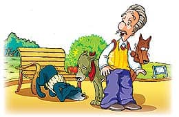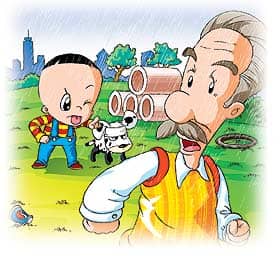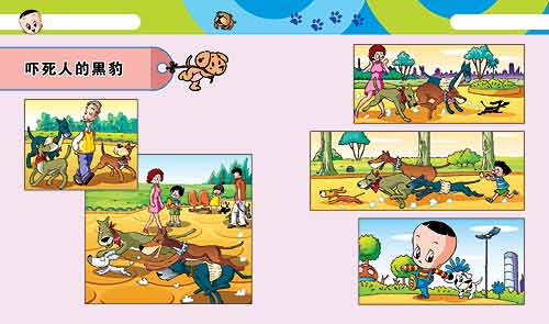 后来他终于想出来一个好办法,自己天天在家里学大狼狗的叫声:“汪汪!汪汪!”起先大头儿子一叫,斑点狗就不敢靠近他,要么躲到桌子下面,要么藏到门背后。后来慢慢的,斑点狗就不怕了,大头儿子再怎么叫,它也敢爬到他的腿上去玩。