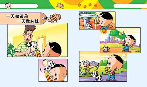 这倒是个不错的主意。大头儿子决定让斑点狗一天做弟弟,一天做妹妹。