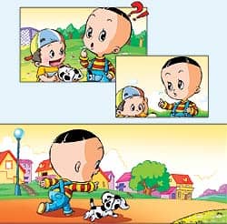 中午,大头儿子带着斑点狗刚出门,就碰到邻居贝贝。