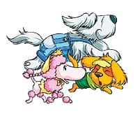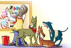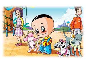 狗司令老爷爷看见了大头儿子,就走过去抱起斑点狗看了看,忽然“哈哈”大笑起来:“你怎么把一只公狗打扮成母狗的样子呀?”