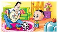 舅舅送给大头儿子一条斑点狗,大头儿子乐坏了,把大头直往斑点狗的肚子上拱,他一高兴就这样,也不管斑点狗喜不喜欢他这样。斑点狗不喜欢,它躲到椅子后面去了。