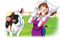 有一天,大头儿子问邻居贝贝:“你知道我们喝的牛奶是从哪里来的吗?”