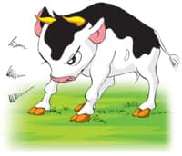 奶牛宝宝根本不听大头儿子的话,他还没有靠近呢,奶牛宝宝就把两只牛角竖起来,头低下去“哞哞”直叫,好象在说:“要是你再敢靠近我,就别怪我不客气啦!”贝贝胆子特别小,一看就急得“哇哇”直叫:“大头儿子别过去,牛角会把你的大头戳出洞来的,血流光了你会死掉的!”