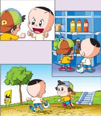 “贝贝,我们一起去奶牛场给奶牛宝宝送点吃的东西好吗?”大头儿子立刻提议说,贝贝听了连连点头。于是他们买了橘子水、葡萄汁、可乐、豆浆等饮料,就往奶牛场跑去。