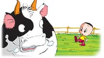 大头儿子想了一下,就扒着栏杆冲奶牛大叫:“谢谢奶牛妈妈!谢谢奶牛妈妈!”可奶牛们埋头吃着,谁也没有抬起头来表示听见了。大头儿子就再大点声,叫得喉咙都痒痒的要咳嗽,奶牛们还是没有听到。