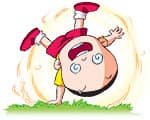 于是,大头儿子绕着奶牛场的栏杆一个接一个翻起筋斗来,只见他越翻越快,越翻越远,翻得满头大汗,差不多都翻遍了大半个奶牛场了,却只有一头小奶牛从妈妈身后探出脑袋,傻傻地看了大头儿子一眼后,立刻又缩了回去。