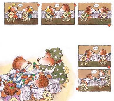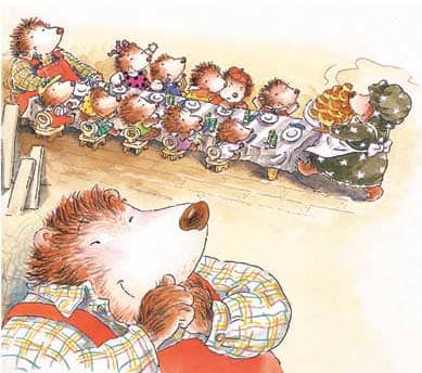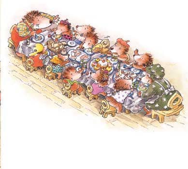 15、哈哈,瞧刺猬这一大家子,他们坐在橡木餐桌前吃饭的样子是多么快乐、多么热闹呀!
