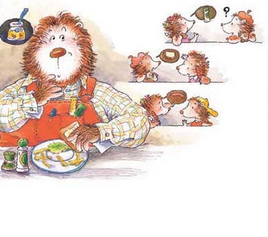 13、所以,刺猬爸爸最后拿到的,总不是他想要的东西。刺猬爸爸想要胡椒时,最后可能拿到的是面包;刺猬爸爸想要南瓜,最后可能得到的是菜花;刺猬爸爸说“请给我葡萄”,最后递回来的是汤勺……